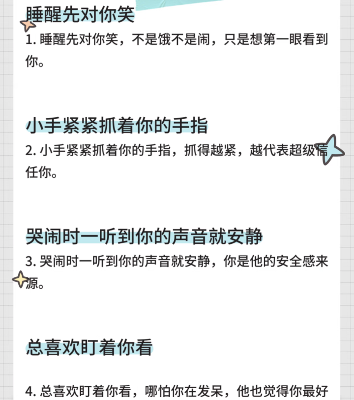 当姆妈的,或者皆经验过这么的期间:你刚把孩子哄睡,蹑手蹑脚准备溜出房间,脚还没沾地,死后就传来“哇”的一声大哭。你无奈地回身,小家伙却坐窝咧开嘴,伸出两只小胖手要你抱。你觉得他在干扰,其实他仅仅在说:“姆妈别走,我需要你。”小宝宝的爱意,从来不需要言语,因为他们全身每一个细胞皆在对你表白。