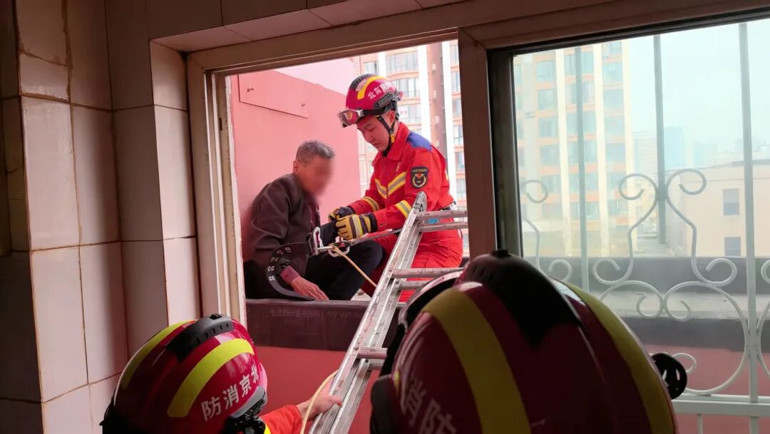 老东说念主被困在五楼外连廊顶超六小时。