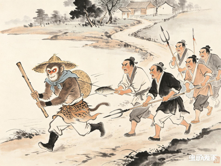 耍完之后,孙悟空伸手要钱,村民们却纷繁摇头,说:“我们渔村穷,没钱给你。”